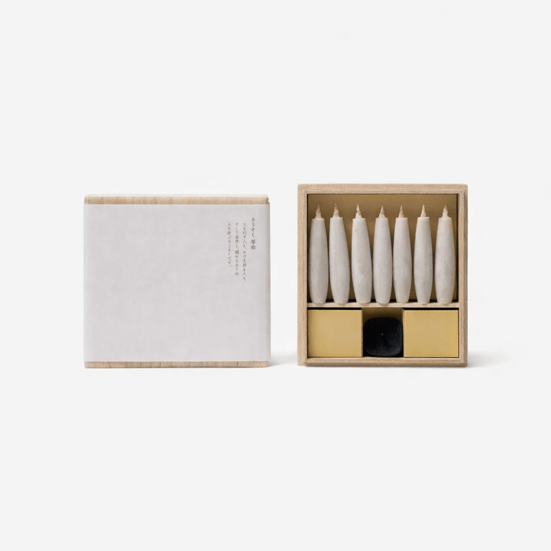 The Nanao Candlemakers are a family-run workshop in Ishikawa, Japan, preserving the tradition of Japanese plant-based candle making since 1892. Working with sumac wax harvested from the Japanese haze tree, along with rice bran and rapeseed oils, their candles are entirely plant-based and clean-burning. Each candle is shaped using traditional wooden and metal molds, then finished by hand. Their signature hollow wicks, made from dried rush and washi paper, create a tall, powerful flame that reflects centuries of practical refinement.