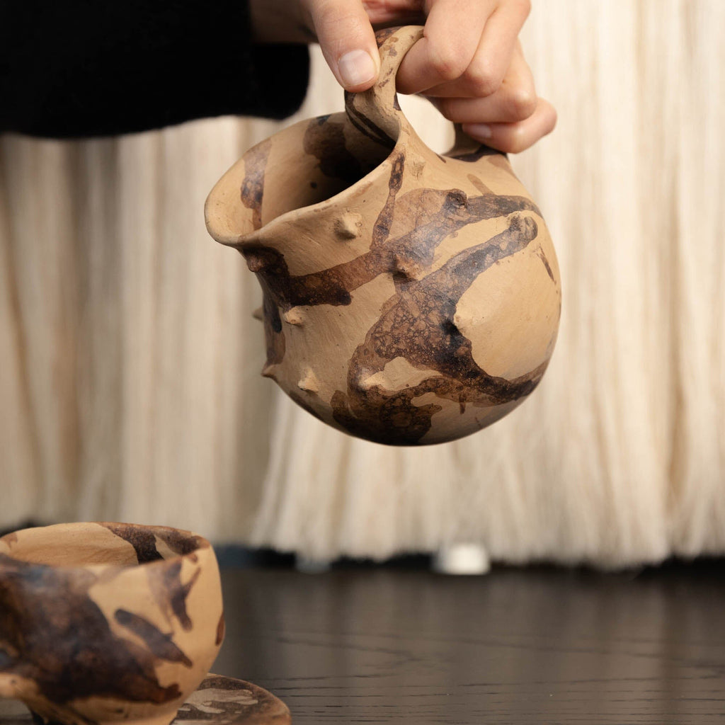 Each region has its own culture, represented through the local earth that they create their clay with. The black clay comes from the rich, fine soil of San Bartolo Coyotepec, the rustic pieces splattered with prickly pear juice come from Tonaltepec, and the deep red clay pieces hail from San Marcos Tlapazola.