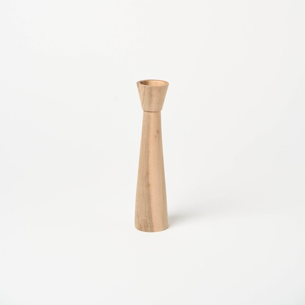 Minimal and sculptural, this solid walnut candle holder is hand-turned in Marrakech and sized to hold a 4 cm pillar candle. Its clean, tapered profile offers a modern silhouette—timeless, grounded, and quietly bold.