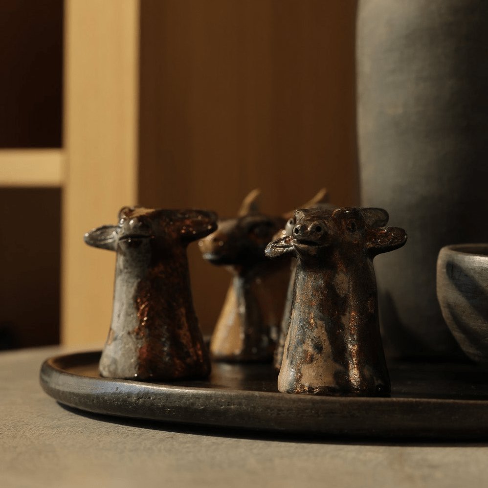 Her process remains entirely organic and transparent, shaped by ancestral techniques that honour the earth. Each vessel embodies duality, tradition, and the quiet rhythm of generations who continue to create beauty through the meeting of fire and water.