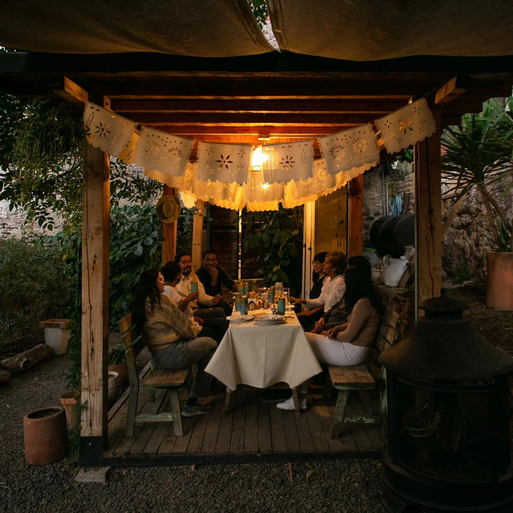Handmade by weavers in Querétaro, Mexico, each cotton paper flag is delicately cut and stitched into a length of soft celebration. Hang above a table, along a wall, or across a patio for gatherings that feel warm, intentional, and beautifully alive..