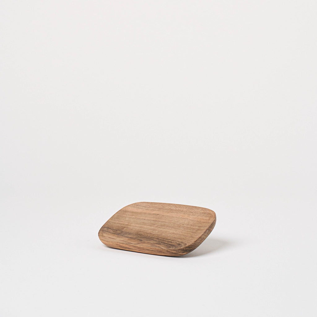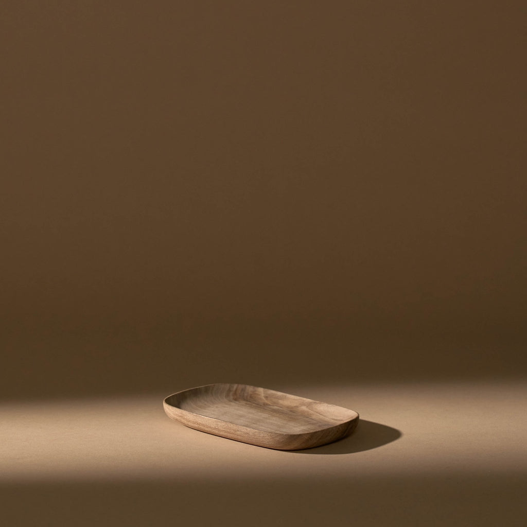Hand-carved in Morocco from rich walnut wood, this minimalist tray is ideal for jewelry or other small essentials. Its rounded edges and smooth finish offer an organic, grounding touch to any surface.