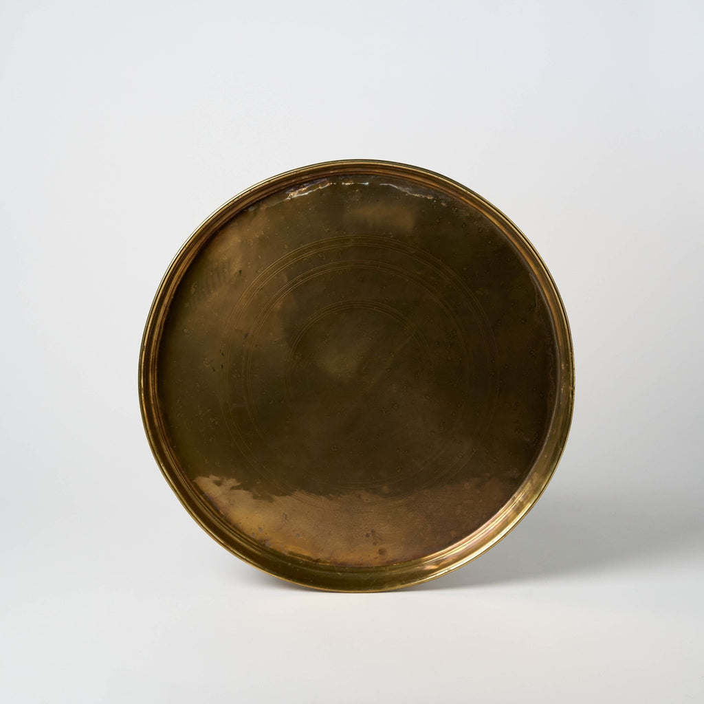 A generous and glowing bronze tray once used to serve mint tea and sweets during Moroccan gatherings. With its wide surface and subtle concentric detailing, this antique piece makes a stunning centrepiece, bar tray, or grounding layer for candles and ceramics. Each tray carries a rich patina and the soulful marks of time.