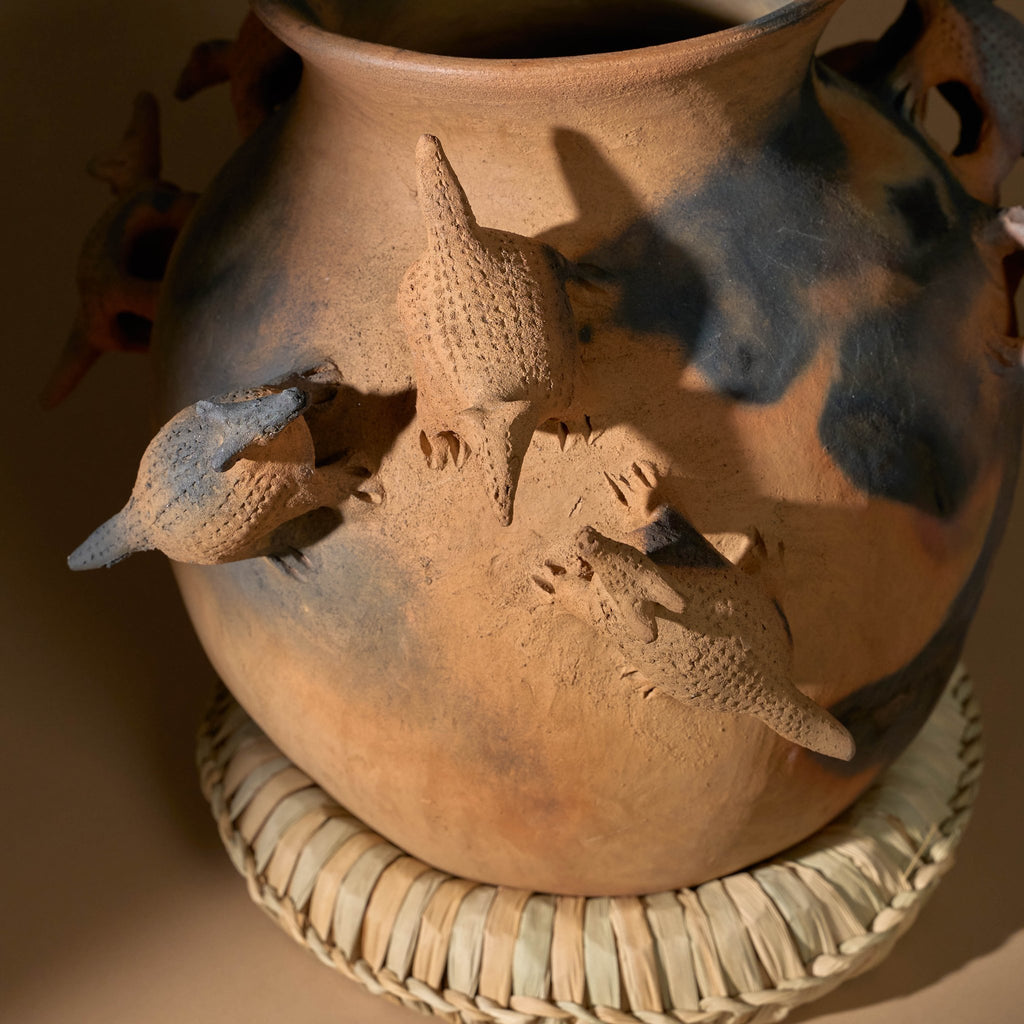 Nestled in the hills of Coeneo, Michoacán, San Pedro Zipiajo is one of 35 Indigenous Purépecha communities devoted to preserving their language and ancestral crafts. Pottery lies at the heart of daily life here—created entirely by hand through pre-Hispanic methods and fired in open-air bonfires fueled by wood, straw, and cow dung. The result is a body of work both resilient and deeply personal, shaped by earth, flame, and centuries of knowledge.