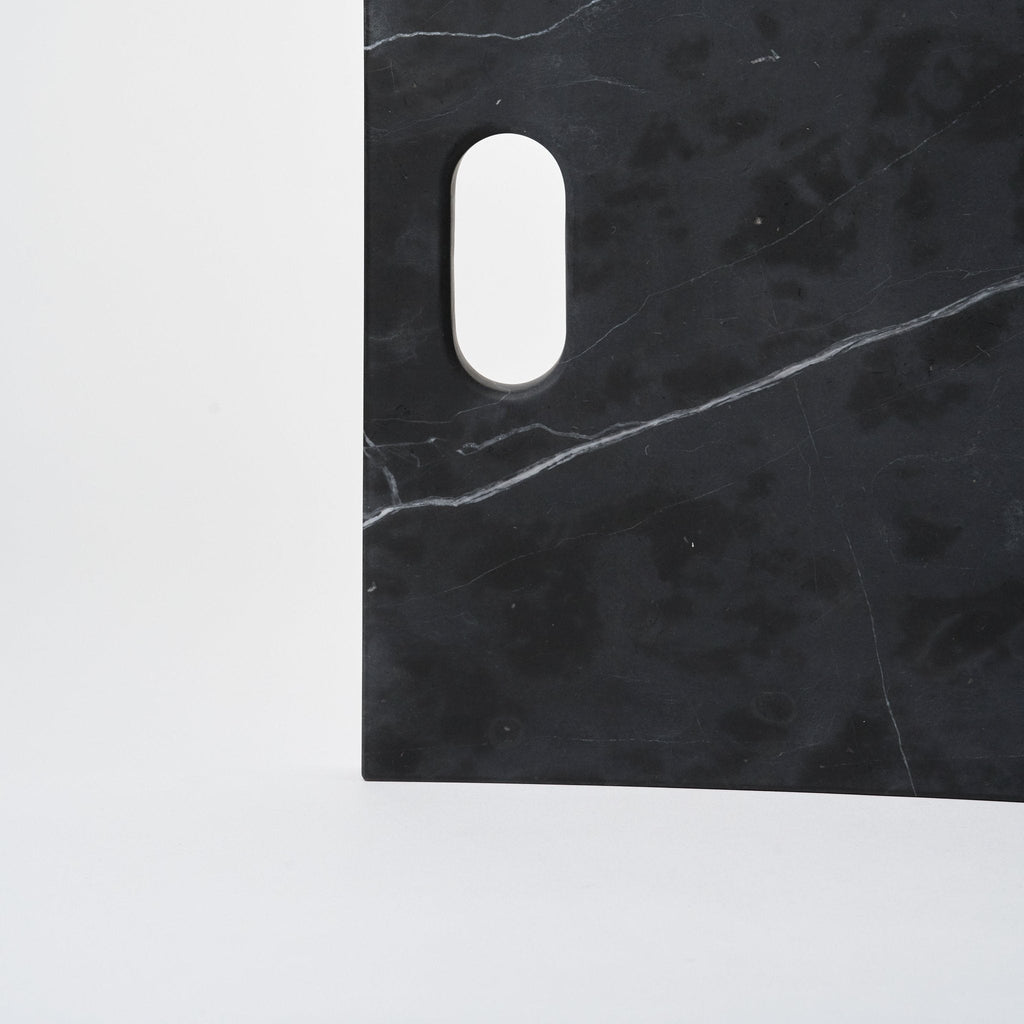 Designed with a clean, squared silhouette and an inset handle, this marble board is as functional as it is beautiful—perfect for serving cheeses or standing alone as a sculptural everyday object.