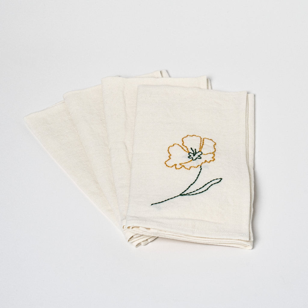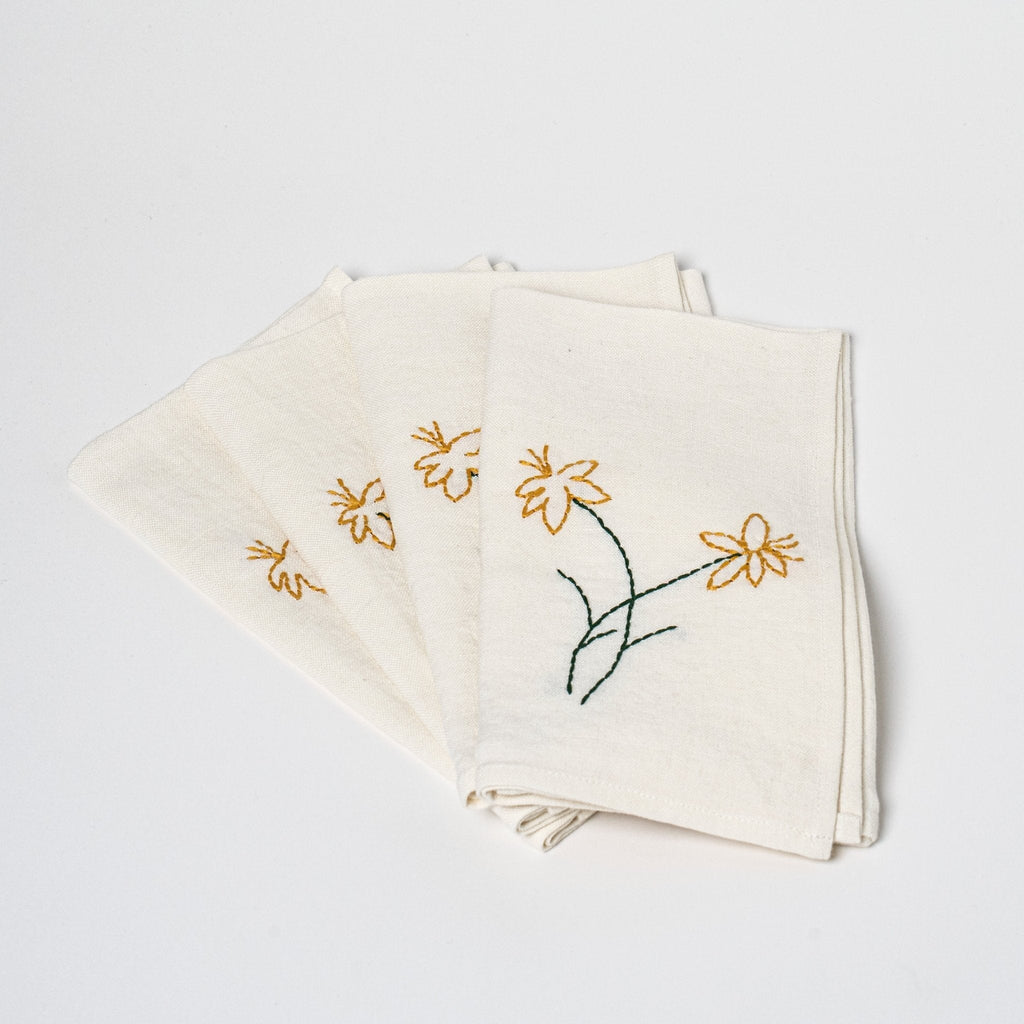 Sarah Espeute is a French artist and designer whose embroidered linens transform everyday rituals into poetic works of art. From her studio in Marseille, she stitches stories of nature and shared meals—scenes of springtime, the sea, and the warmth of gathering around a table.