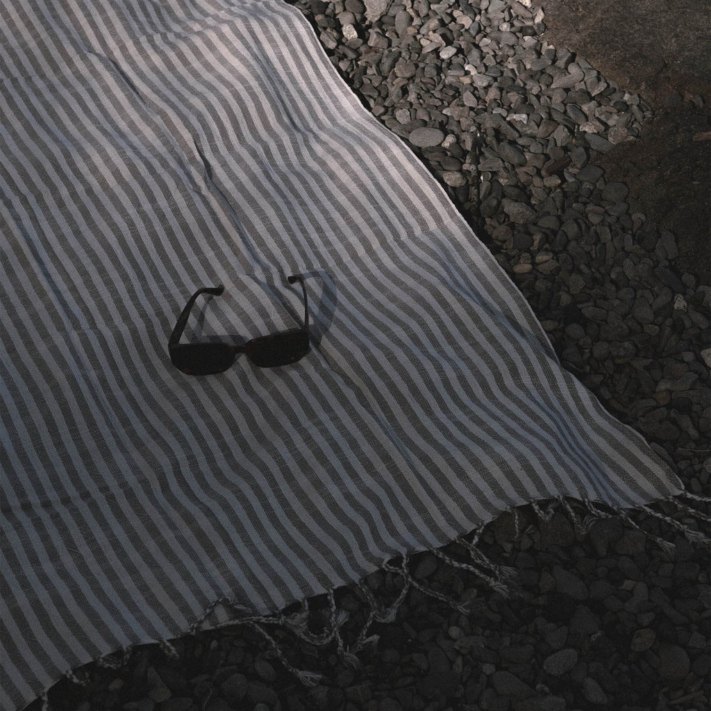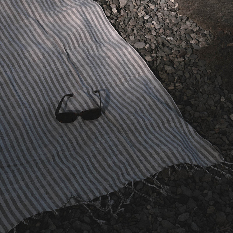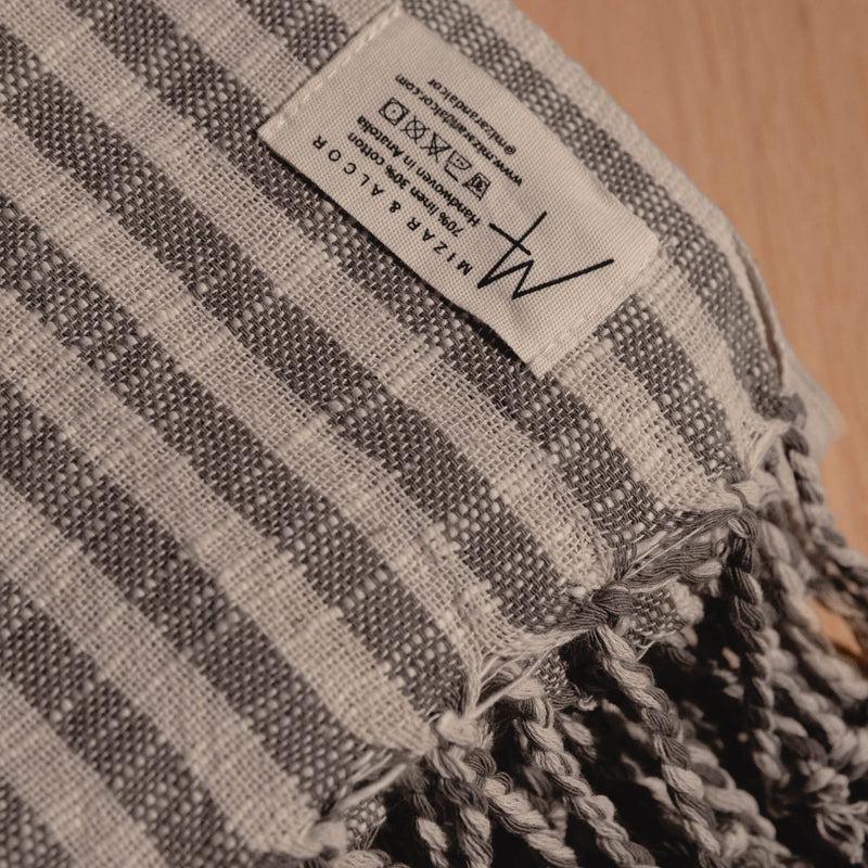Turkish Linen Towel | Grey Stripe
