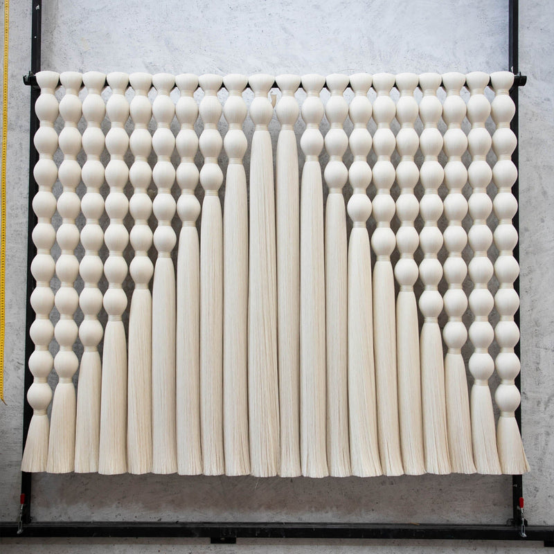 From a small atelier nestled in an old textile factory in Querétaro, Mexico, a visionary approach to sustainable design emerges. The heart of this innovation lies with our Mexican weaving partners—a collective of female artisans committed to redefining the concept of waste. Their mission is to transform discarded textile waste, recovered raw cotton yarn, and fiber from the indigenous Sansevieria plant into stunning, large-scale textile wall art.