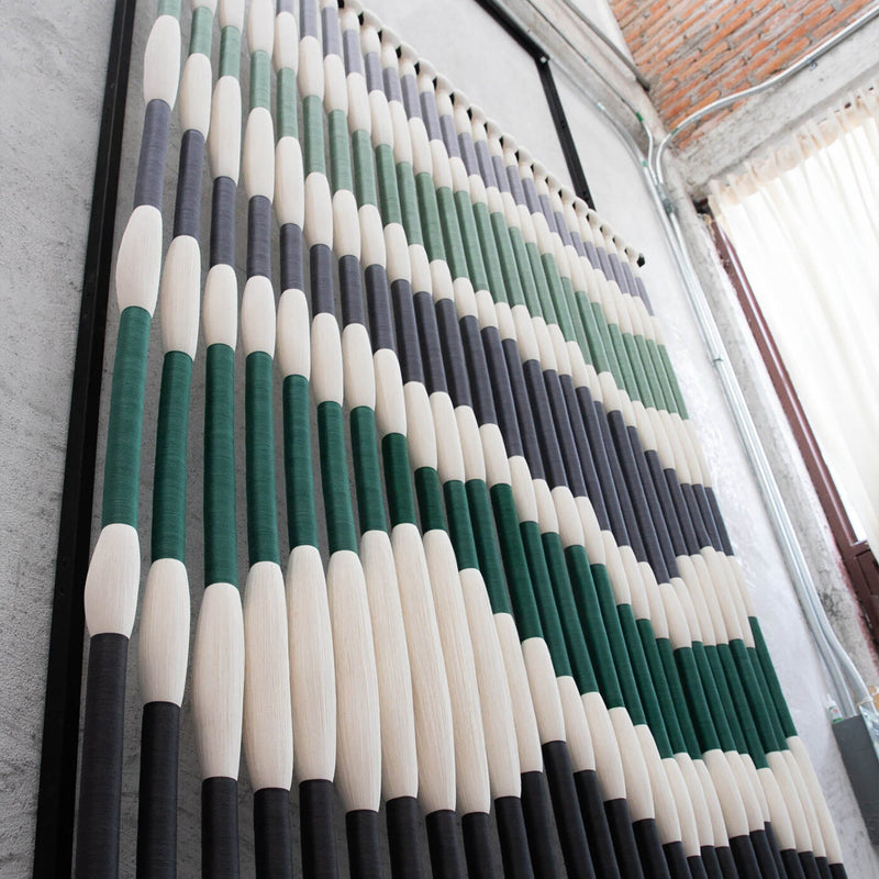 From a small atelier nestled in an old textile factory in Querétaro, Mexico, a visionary approach to sustainable design emerges. The heart of this innovation lies with our Mexican weaving partners—a collective of female artisans committed to redefining the concept of waste. Their mission is to transform discarded textile waste, recovered raw cotton yarn, and fiber from the indigenous Sansevieria plant into stunning, large-scale textile wall art.
