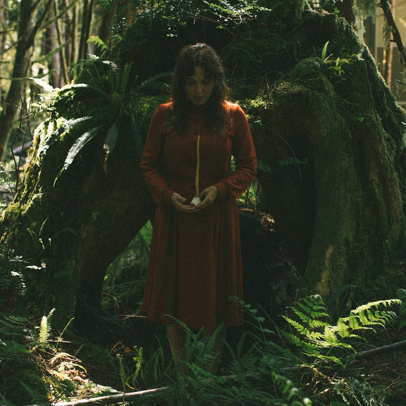 A lover of the sea, Tanya dives into the cold Pacific waters to harvest kelp—drying it on driftwood, then grinding it down by hand to pigment her candles in subtle green hues. This deeply personal process—one shaped by the tides, the forest, and the rhythms of nature—makes each piece feel like a love letter to the West Coast. Raw, sacred, and alive.