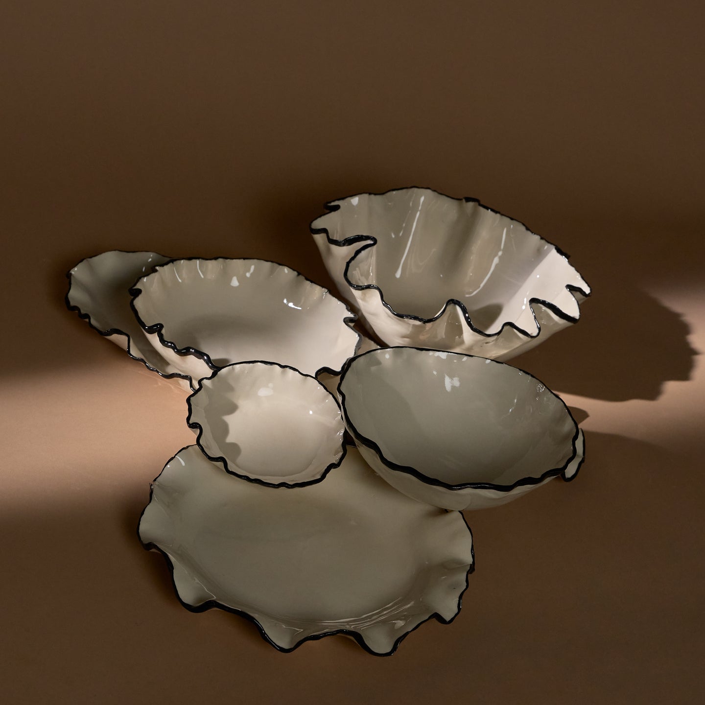 Hand-formed porcelain with hand-painted edges. These timeless pieces add elegance to your gatherings, made to be treasured for years to come.