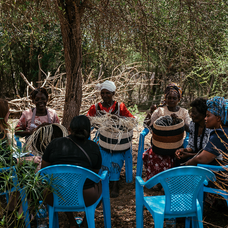 The women of the Kitui cooperative harvest and prepare each strand of sisal by hand, working with techniques carried through generations. Every basket reflects their strength, artistry and the quiet rhythm of a tradition that continues to sustain their community. These weavers work side by side, sharing stories as they create, turning everyday moments into pieces filled with intention. Their craft is both a connection to their ancestors and a legacy for the next generation.