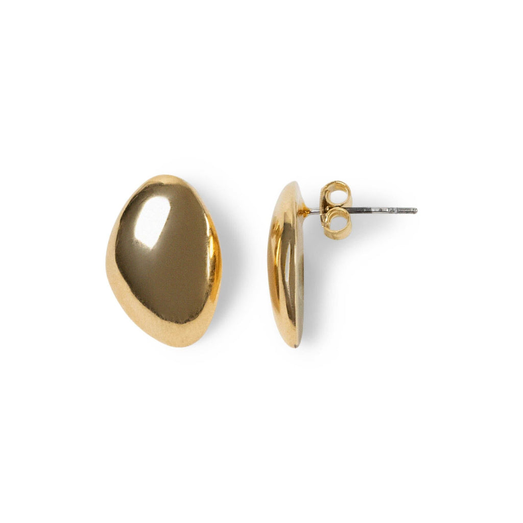 These modern, geometric earrings are made from up-cycled brass in an eye pleasing oval shape that can easily elevate and work with any look.