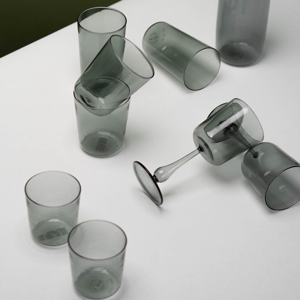 The pieces are shaped using traditional mouth blowing technique; the innovation of design comes from modern shapes inspired by aesthetics of rationalist and modernist architecture whilst respecting its functionality. The result gives each piece a simple elegance.