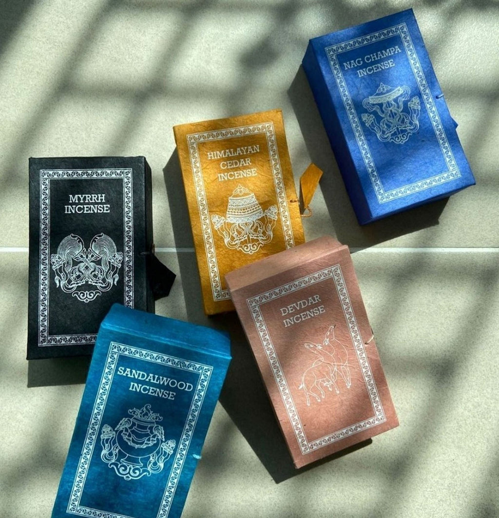 These incense sticks and clay holders are crafted from locally sourced ingredients found in the Kathmandu Valley in the Himalayas, and come beautifully packaged in handmade paper boxes.