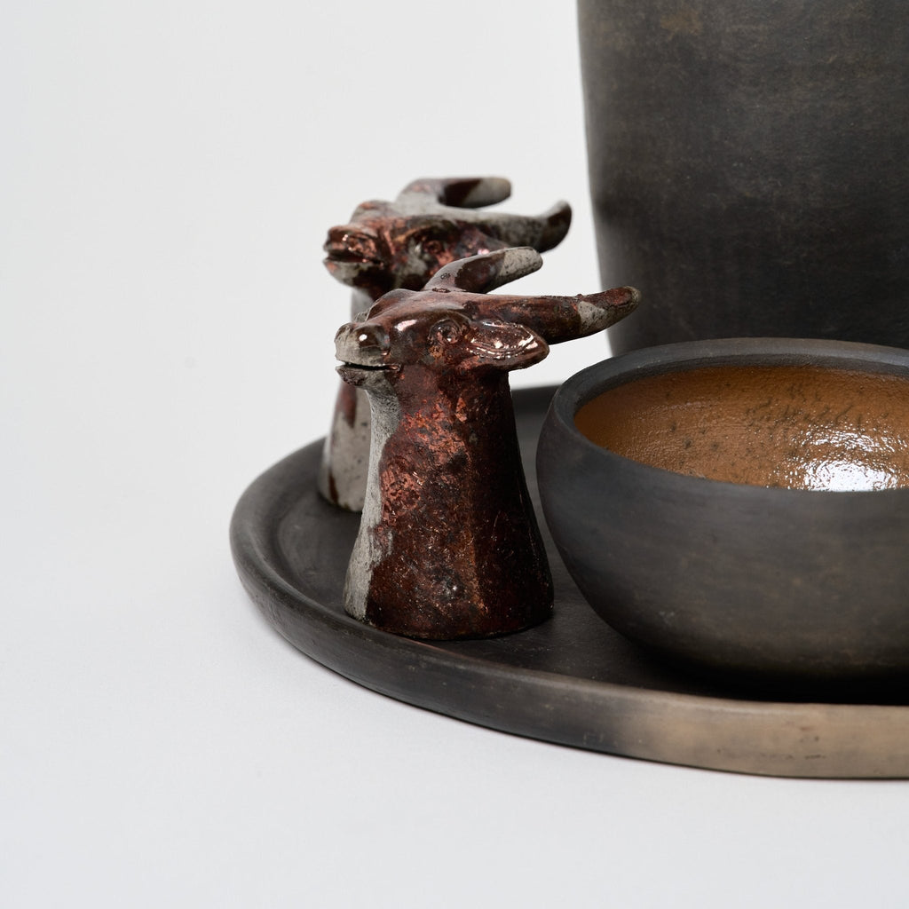 Her process remains entirely organic and transparent, shaped by ancestral techniques that honour the earth. Each vessel embodies duality, tradition, and the quiet rhythm of generations who continue to create beauty through the meeting of fire and water.