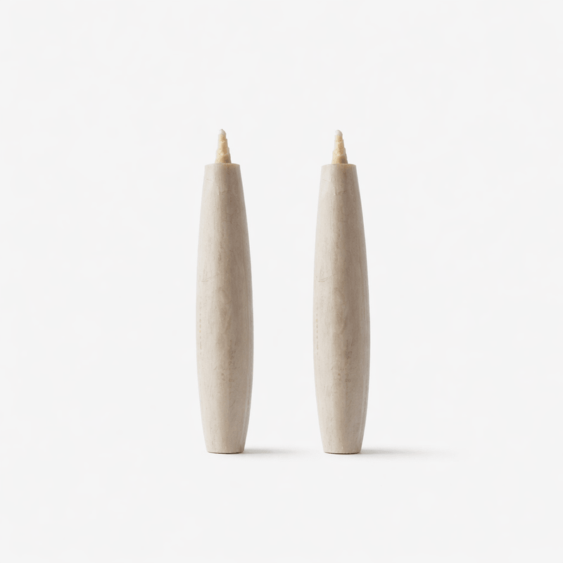 The Nanao Candlemakers are a family-run workshop in Ishikawa, Japan, preserving the tradition of Japanese plant-based candle making since 1892. Working with sumac wax harvested from the Japanese haze tree, along with rice bran and rapeseed oils, their candles are entirely plant-based and clean-burning. Each candle is shaped using traditional wooden and metal molds, then finished by hand. Their signature hollow wicks, made from dried rush and washi paper, create a tall, powerful flame that reflects centuries of practical refinement.